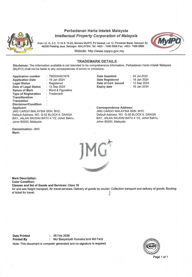 OUR COURIER PARTNER – 📦 JMG Cargo Malaysia SDN BHD – Trusted Cargo & Logistics Solution 🇲🇾✈️🇧🇩